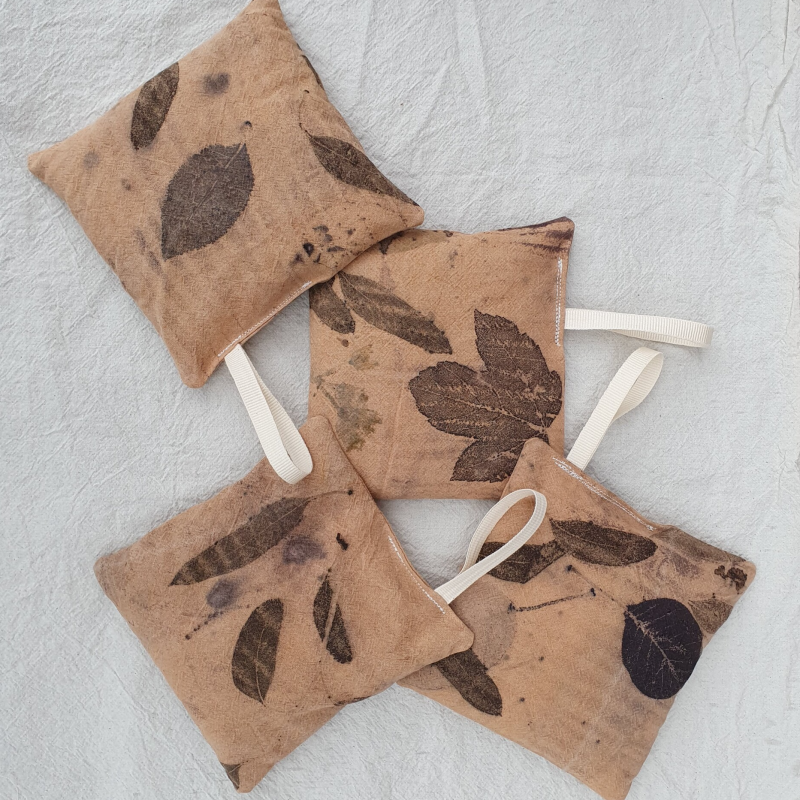 Plantaardig geverfd en met een ecoprint van bladeren.